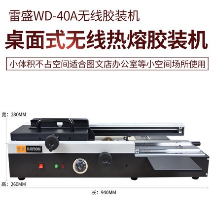 雷盛WD-40A桌面无线胶装机凭证合同标书档案文件书籍热熔胶粒手动无线胶装机免打孔桌面自动加热热熔装订机